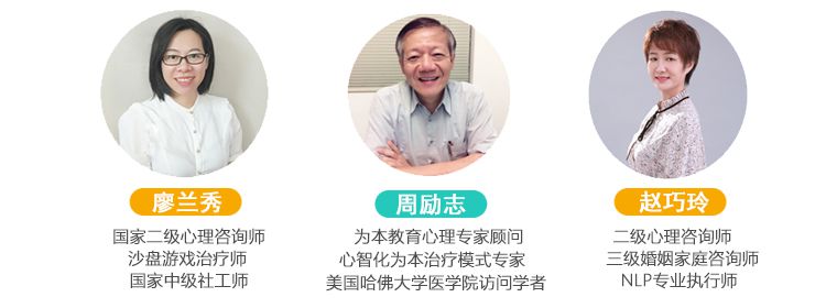 周鈺清為本教研專(zhuān)家導(dǎo)師國(guó)家二級(jí)心理咨詢師美國(guó)NGH催眠治療師中國(guó)心理健康委員會(huì)理事廣東省心理咨詢師協(xié)會(huì)理事個(gè)人簡(jiǎn)介為幼兒園、小學(xué)、初中、高中等不同年齡段家長(zhǎng)舉辦親子溝通講座及沙龍,加強(qiáng)家、校互動(dòng),結(jié)合家長(zhǎng)、學(xué)校共同為孩子的心理成長(zhǎng)獲取更適合的方法;對(duì)特殊兒童、問(wèn)題兒童開(kāi)展個(gè)體、團(tuán)體心理輔導(dǎo);設(shè)計(jì)不同年齡段兒童社交能力、學(xué)習(xí)能力、增強(qiáng)